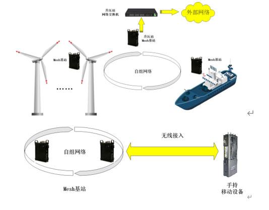 解決風(fēng)機(jī)機(jī)位網(wǎng)絡(luò)信號(hào)弱/無(wú)信號(hào)的問(wèn)題,為智慧風(fēng)電場(chǎng)的建設(shè)提供通信基礎(chǔ)和網(wǎng)絡(luò)保障:海上風(fēng)電場(chǎng)無(wú)線自組網(wǎng)絡(luò)傳輸系統(tǒng)主要目的是實(shí)現(xiàn)風(fēng)電場(chǎng)所有風(fēng)機(jī)端的無(wú)線網(wǎng)絡(luò)覆蓋,給信息系統(tǒng)提供數(shù)據(jù)傳輸通道,并承載移動(dòng)應(yīng)用。