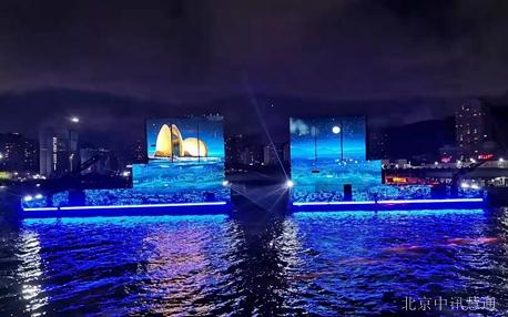 在節(jié)目開演的前兩個月,九州港項目負責(zé)人找到我們公司,尋求我們的幫助,項目現(xiàn)場主要在船舶上放置多媒體裝置(大屏、燈光、音箱、機械噴泉等裝置),表演節(jié)目的不同特效。6艘小型表演船、2艘控制表演船、2艘觀眾船,共計10艘船,實現(xiàn)船舶間的無線網(wǎng)絡(luò)信號傳輸,確保每艘船都有穩(wěn)定清晰的網(wǎng)絡(luò)信號。