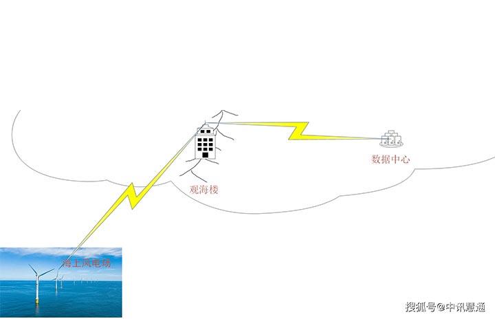 設(shè)計(jì)中考慮到,信號(hào)中繼方案同時(shí)能夠緩解信號(hào)遠(yuǎn)距離傳輸?shù)膲毫?,最終確定通過中途進(jìn)行一次信號(hào)中繼實(shí)現(xiàn)數(shù)據(jù)中心與海上風(fēng)電場(chǎng)的信號(hào)傳輸。