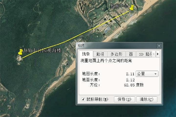 通過對(duì)數(shù)據(jù)中心周邊地形考察,大角山公園附近觀海樓符合相對(duì)較高的海拔和同海上風(fēng)電場(chǎng)更近的距離??勺鳛橹欣^信號(hào)塔的選址。