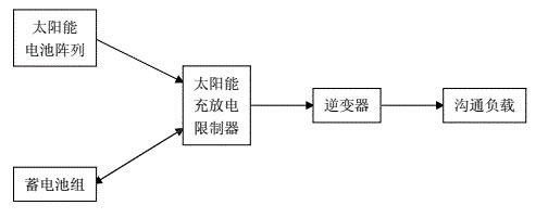 通信桿供電方案配備獨(dú)立的太陽能供電系統(tǒng)。太陽能供電系統(tǒng)主要由太陽能電池方針、充放電控制器、逆變蓄電池組構(gòu)成(如圖)。