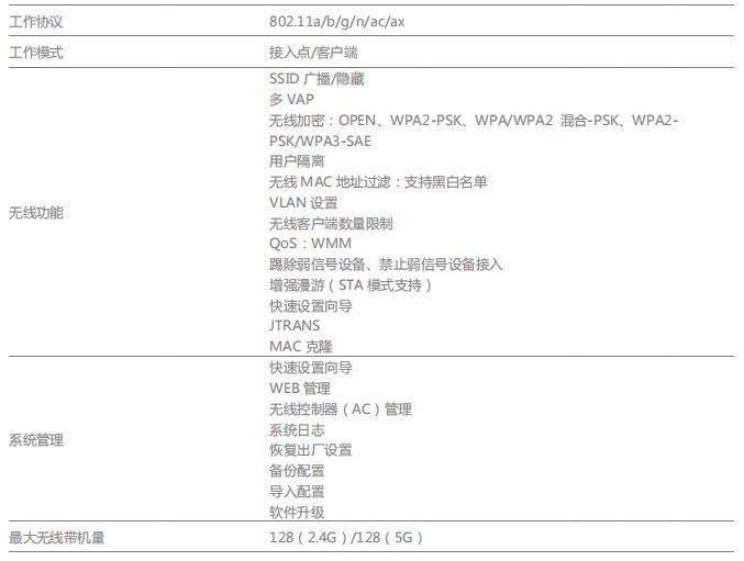支持 802.11ax 標(biāo)準(zhǔn)及 4x4 空間流,最高傳輸速率可達(dá) 5.4Gbps。有線端口支持 2.5Gbps,避免因?yàn)榍д子芯€口造成的系統(tǒng)瓶頸。