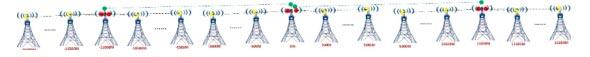 考慮到電力相鄰兩個電力鐵塔之間的距離大概為400米左右,相鄰兩個電力鐵塔之間一定是可視的,而且青海地處高原,高原、河谷地形比較多,多個鐵塔之間的可視環(huán)境相對較好。我們按照相鄰鐵塔之間500米的距離來規(guī)劃方案,每10公里(20個鐵塔,假設1號塔到20號塔)設置為一個接入層小區(qū)間。在每個小區(qū)間內(nèi),在10號塔上部署中訊慧通科技點對多點無線工業(yè)級基站網(wǎng)橋(區(qū)間匯聚點),將10號塔兩側(cè)的鐵塔信號全部回傳到10號塔,建立一個區(qū)間接入層無線傳輸鏈路。其他區(qū)間以此類推。