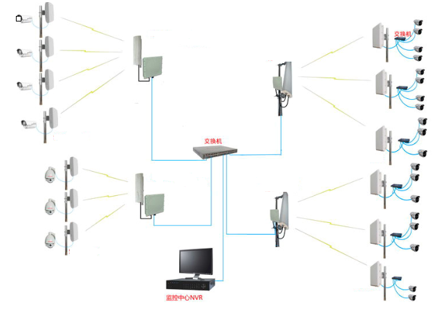 企業(yè)之間的信息傳遞--在大型企事業(yè)單位之間的廠房、辦公樓之間的網(wǎng)絡(luò)連接,由于場(chǎng)地的擴(kuò)展需要新增廠房倉(cāng)庫(kù),這些建筑之間的跨越比較大,不方便走線或需要很多協(xié)調(diào)工作,在這里高帶寬無(wú)線信息的傳遞可以迅速解決這些問(wèn)題。在很多情況下,有線的線路是很難鋪設(shè)的,如:歷史悠久的建筑、舊的建筑、開(kāi)闊的區(qū)域、繁忙的街道、難以布線的環(huán)境大型機(jī)械較多的建筑工地、礦區(qū)、隧道、山區(qū)、無(wú)人區(qū)、江河、風(fēng)景名勝區(qū)域、油田等等環(huán)境,不方便架線,但是又很有必要傳輸網(wǎng)絡(luò)信號(hào)、監(jiān)控信號(hào)或其他多媒體信號(hào)的場(chǎng)所。