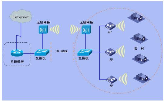 無線技術(shù)的成熟與發(fā)展在越來越多的場合得到推廣及應(yīng)用,并得到各大運營商的青睞運用到各種場合,隨著農(nóng)村的發(fā)展,人們生活水平的逐漸提高,對上網(wǎng)需求有著更大的提高。然而,農(nóng)村地域廣闊,地形環(huán)境復(fù)雜多樣,居住地間距離較遠(yuǎn)且分散,網(wǎng)絡(luò)建設(shè)的投資水平和消費水平的限制等等諸多困難,制約著農(nóng)村信息化建設(shè)的發(fā)展。農(nóng)村一般人口居住均在方圓3公里范圍內(nèi), 且高層建筑較少, 房屋多為磚木結(jié)構(gòu)建筑。根據(jù)無線微波的特點,選擇合適的制高點架設(shè)無線設(shè)備并配合合適的接收終端,在半徑5公里范圍內(nèi)能夠達(dá)到高穩(wěn)定性高速率無線鏈路,完全滿足農(nóng)村用戶上網(wǎng)需求,無線寬帶業(yè)務(wù)在農(nóng)村有著不可比擬的優(yōu)勢:建網(wǎng)成本低、一次性投入資金少、運營與維護(hù)成本低、建網(wǎng)速度快、高可靠性與超強(qiáng)的可擴(kuò)展性,不僅可以為農(nóng)民提供方便、快捷、費用低廉的寬帶入戶方式,也非常適應(yīng)農(nóng)村網(wǎng)絡(luò)建設(shè)逐步發(fā)展的需求。